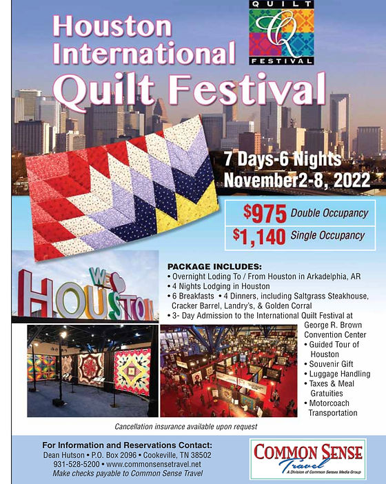 Oct 31 - Nov 6 2022 Group size. Quilts Inc - Houston Quilt Festival Please email.